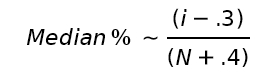 3. There are five ways data data-point 1 (the smallest) can be contained in a PDF probability region (i.e. the Median Percent) representing 5 data-points. The region might contain only the smallest data-point. Or it might contain the smallest two data-points... or it might contain all five data-points. The region representing the 1st Median Percent is thus the sum of these probabilities. In conclusion, to compute the region 50% likely to contain the 1st data point, we must sum the probability of terms for each of the following conditions.