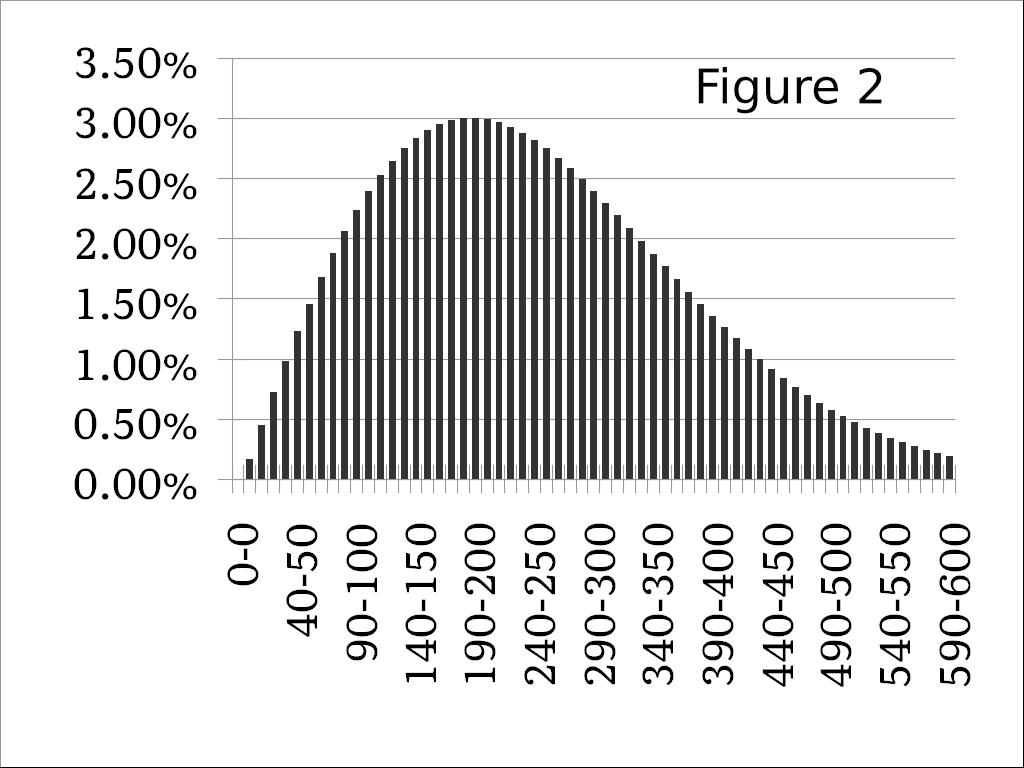 The total for 50 years based on bars is 36.03%. More accurate Weibull mathematics done without bars indicates 40% which matches Professor Goldfinger’s prediction.